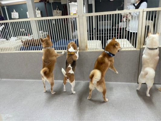 2023.04.17|本店 うわ~雪降ってる… (ボルゾイ エルくん) お友だちきた~♪ (柴犬 イチローくん、ビーグル ブランちゃん、 柴犬 ケン太くん、柴犬 コロ太くん) おりゃっ! (柴犬 福くん、ゴールデン ゴン太くん) 見て!あたちの華麗なターン!! (シェルティ ウェンリィちゃん)