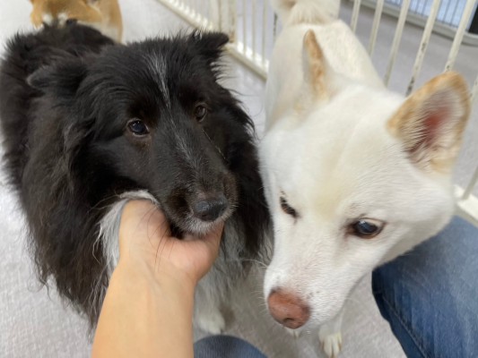 2024.08.13|本店 あたし白いコたちに囲まれてる!!? (柴犬 蜜璃ちゃん) しっぽマフラー♡ (ラブラドール Dくん&ゴールデン かんたろうくん) 順番に並んでね~♪ (シェルティ ジーナちゃん&柴犬 コロ太くん) がおーーーー!! (柴犬 コテツくん)
