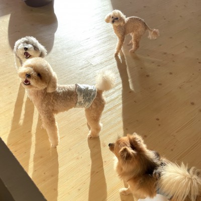 2022.12.02|千歳Rera店 今日の朝もさっむいね~! 雪がないから 特に寒いような気がするね( ̄▽ ̄)" うんうん、見てよー人工芝だけど シャリって感じよ~(* ̄▽ ̄*;) (MIX Felixくん プードル クーちゃん) それにしても、すごい青空で 気持ちがいいよね~(*´▽`*) ホント、寒いわけよね~! でもお天気って嬉しいわね(*^▽^*) (Felixくん クーちゃん) 今日はボク達トリミングだもんね(●ˇ∀ˇ●) トリミング終わった後の写真 かっこよく撮れたらいいなぁ(´▽`ʃ♡ƪ) (プードル もんくん ぱんくん) 写真と言えば~ 今日からクリスマス バージョンなんだって~! どう?かっこよく撮れたでしょ( •̀ ω •́ )✧ (プードル サニーくん)
